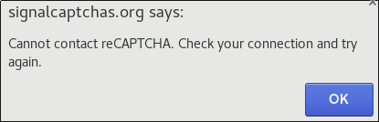 - The reCAPTCHA requires a GUI, thus denying service to users of text-based clients. If someone were to develop a third-party non-graphical plugin or app, OWS is now dictating that all Signal apps must support a GUI and it must also be javascript capable.