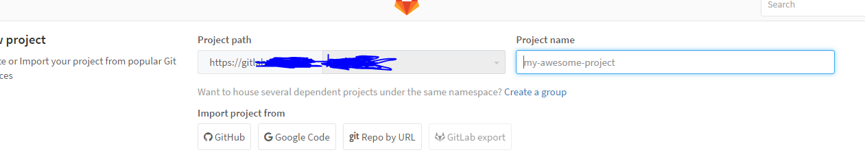 - Click New Project, or browse to https://gitlab.server/projects/new