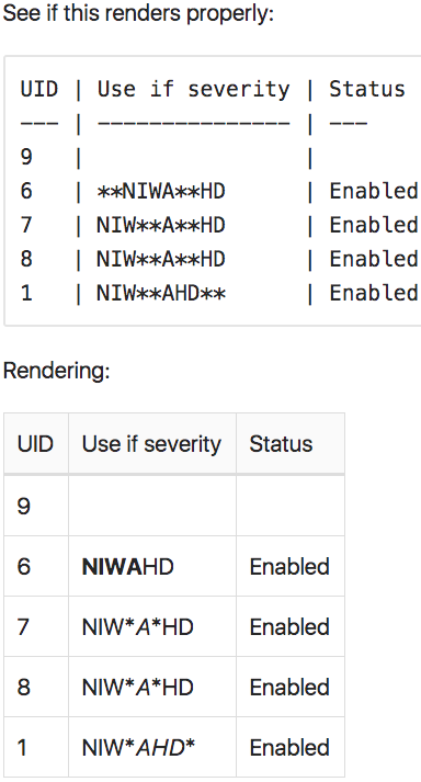 - https://gitlab.com/gitlab-org/gitlab-ce/issues?search=markdown+strong+table&label_name[]=bug