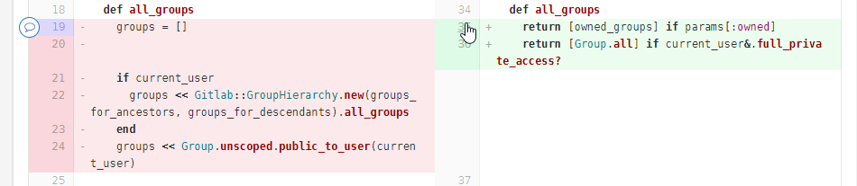 Commenting on right side of side-by-side commit diff is broken