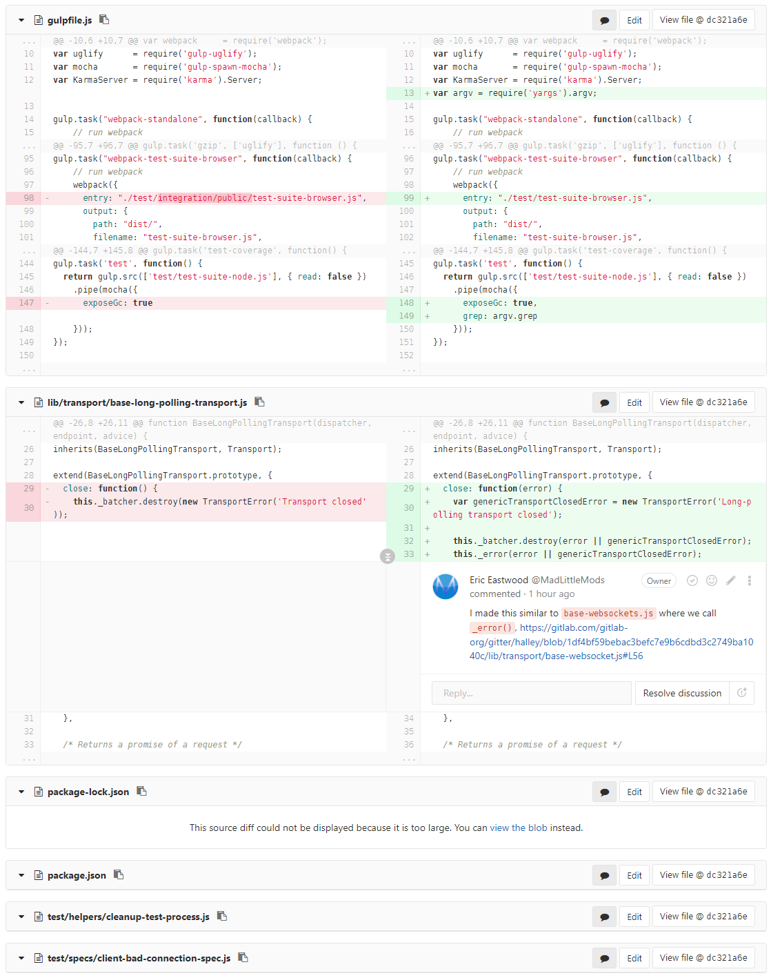 Example: https://gitlab.com/gitlab-org/gitter/halley/merge_requests/7/diffs