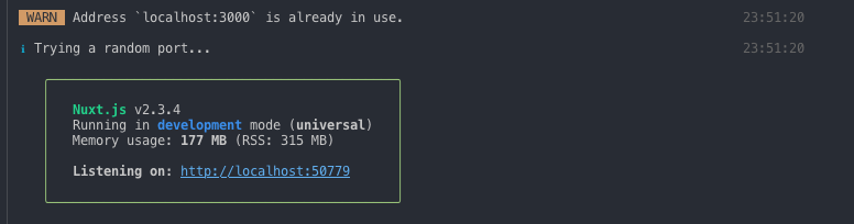 - fix: empty error message in dev mode (https://github.com/nuxt/nuxt.js/commit/3d990fe60675f44a1771b765a73d9bbe5d5fa8f8)