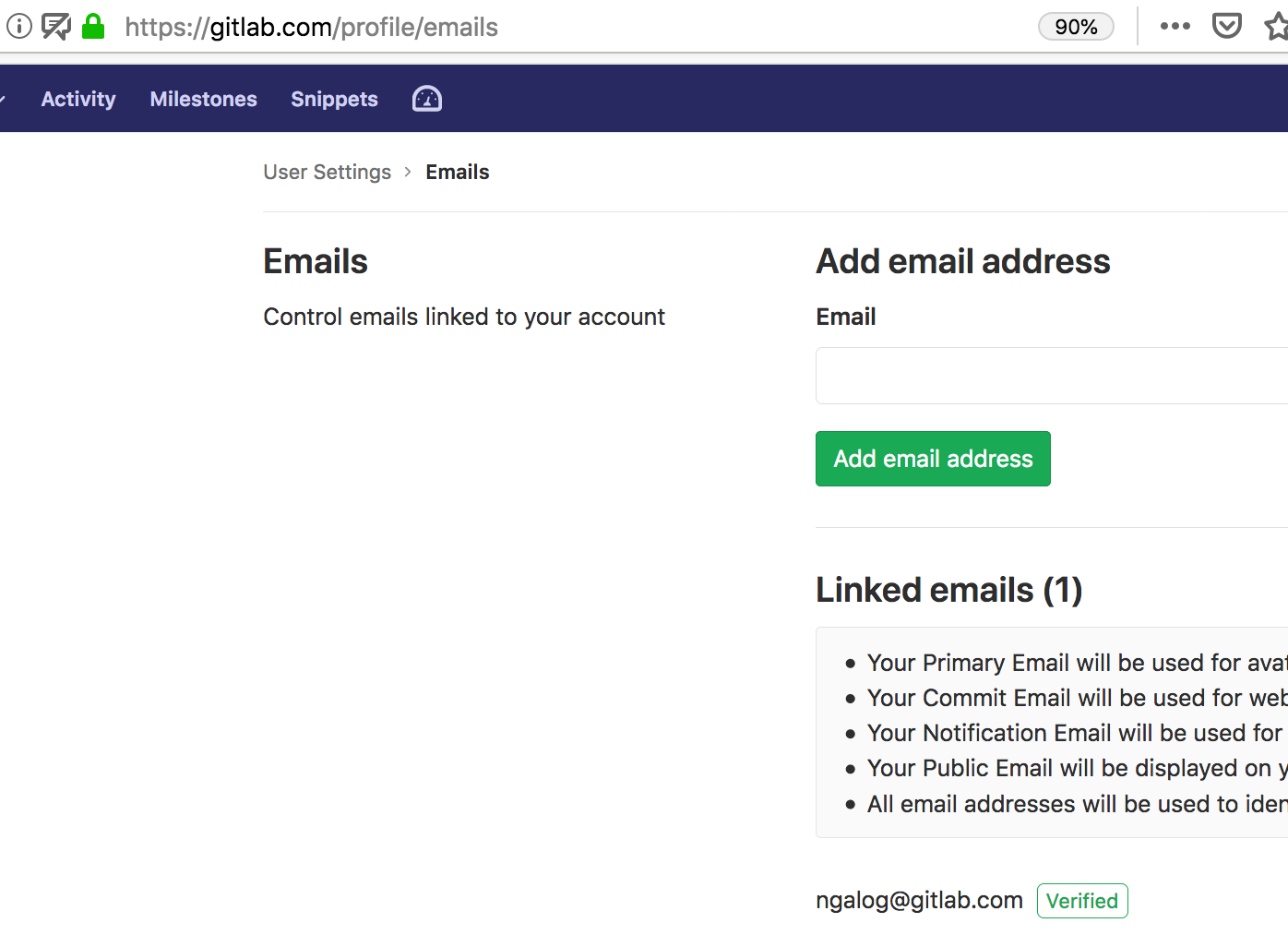 Check the user username4 on gitlab.com, you will see his email address is ngalog@gitlab.com and verified.