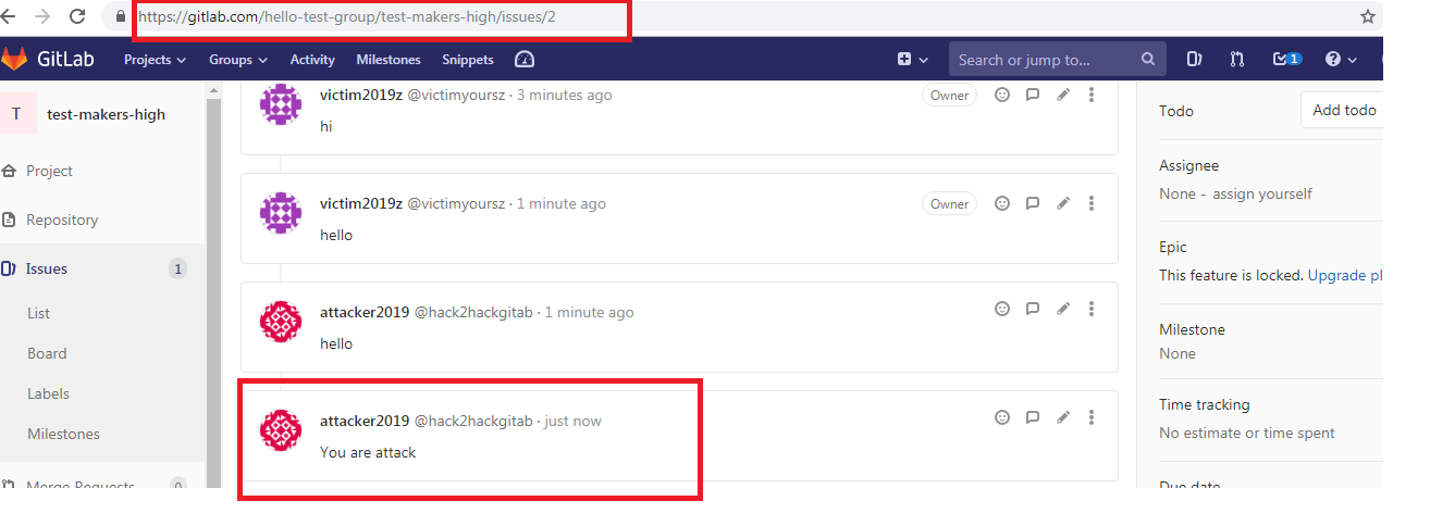 Next attacker will create comments on public project issues which are created by the group.