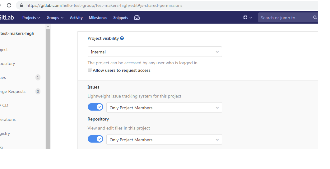 Now victim changes the project visibility from public to internal.