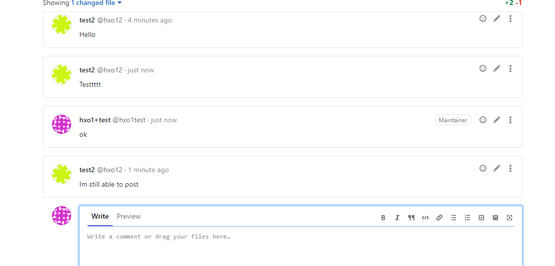 this could be exploited to comment on the commits by the attacker who was accidentally added to the project or was removed .