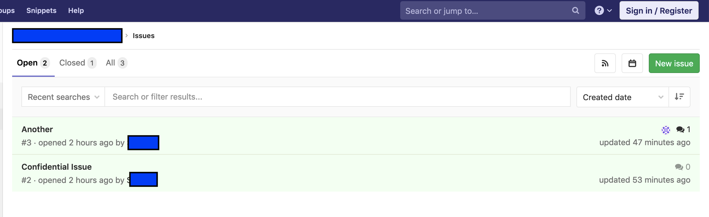 Additionally, if we open a new anonymous session and navigate to the issues page for this project, we will see that the issue is "gone".
