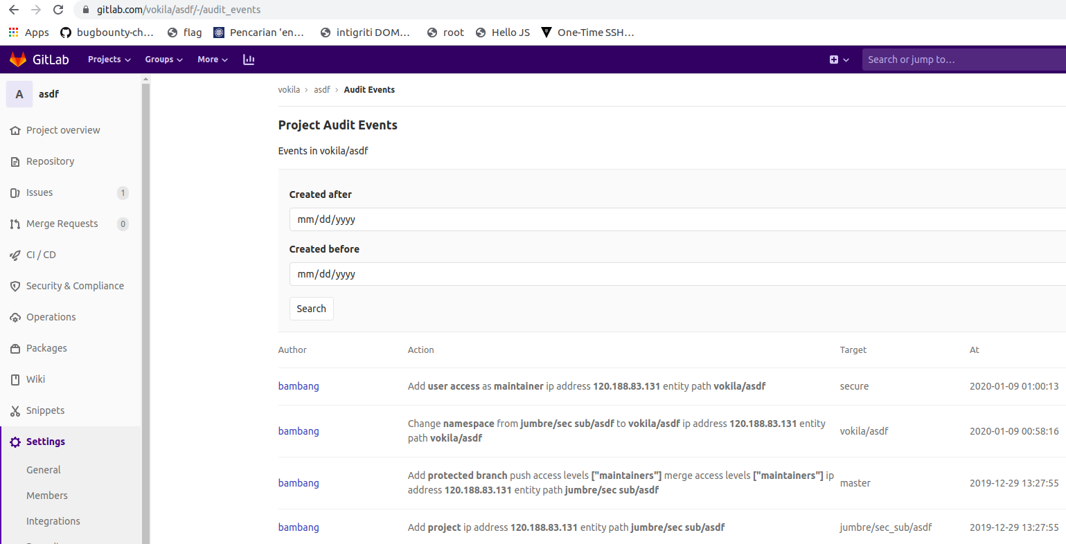 I have found information disclosure regarding transfered group/sub-group/project. User that have access to the transfered group/sub-group/project can view previous group path of the transfered group/sub-group/project. This information in audit events about previous group path should not be exposed to the user that dont have access to the the previous group.