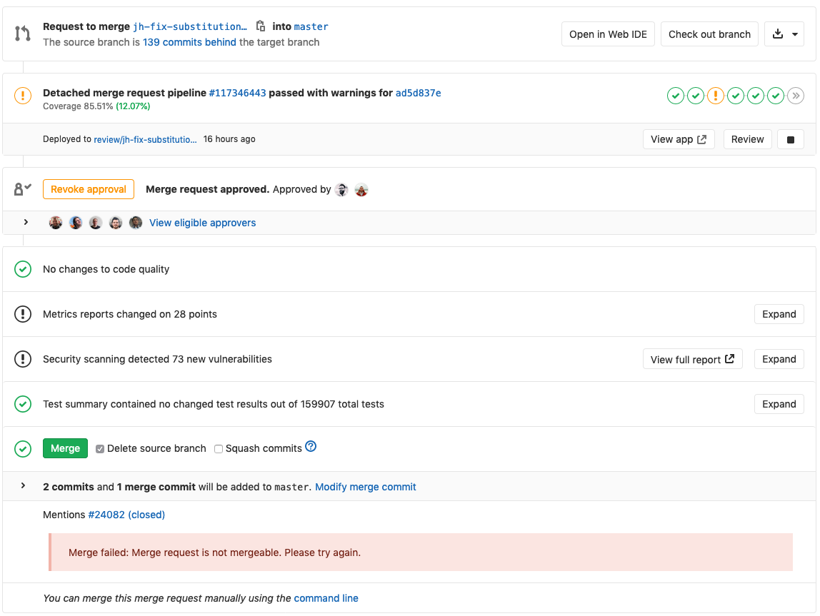 In !24699 (comment 287536191) I approved and merge a merge request in one go using quick actions.