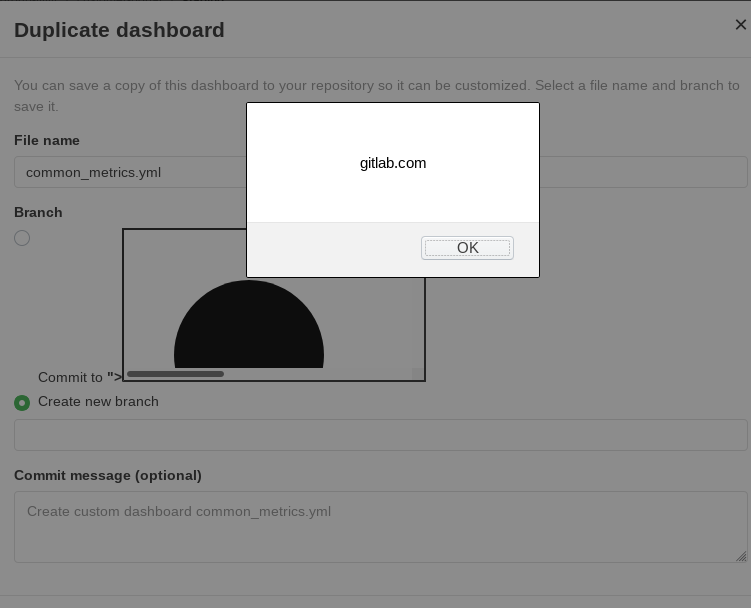 I found a stored XSS vulnerability in GitLab via the metric dashboard duplication functionality, which executed on gitlab.com