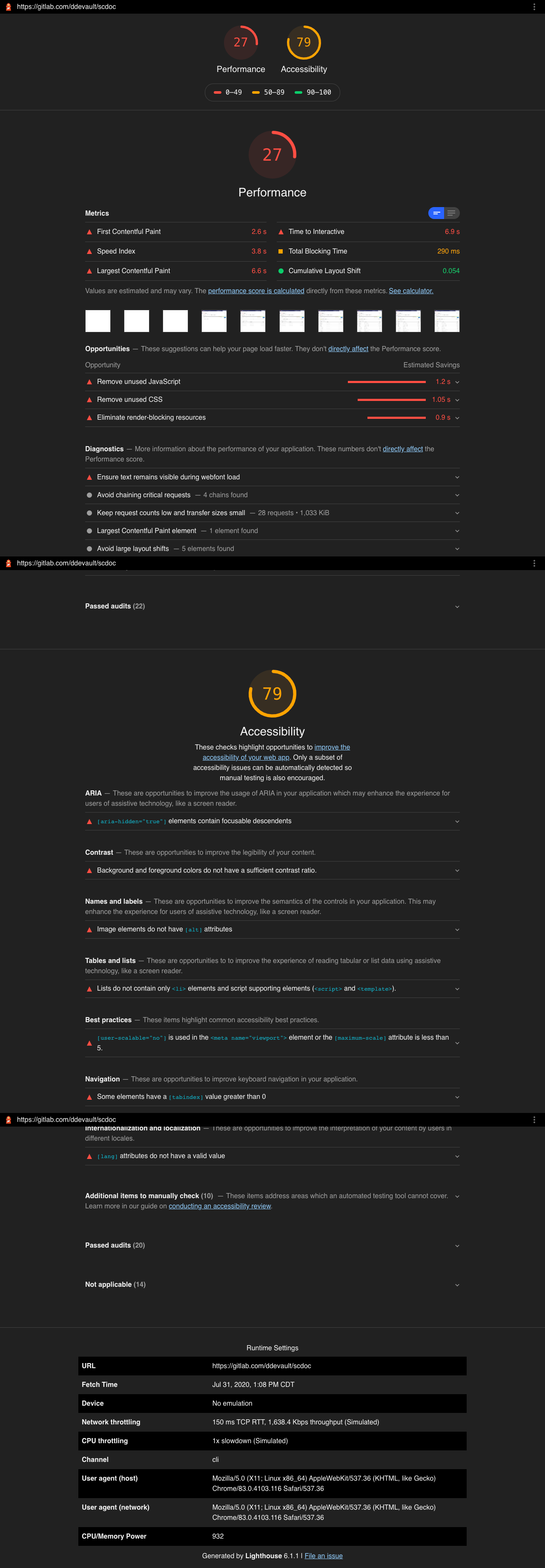 forgeperf currently give this page a score of 27. There has been some discussion around wether or not we want to use this as our benchmark, but until we settle on a better scoring system, it's included here as our baseline: