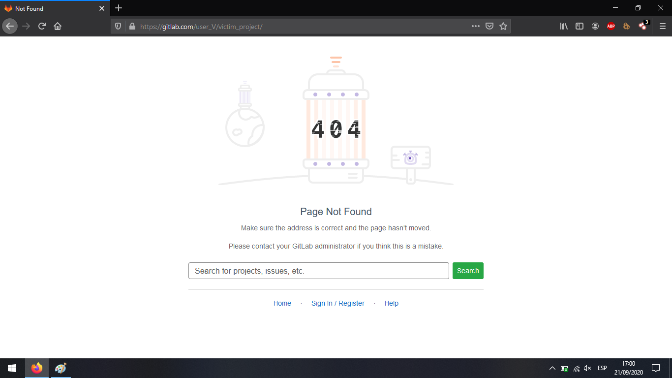Denegación de servicio al acceder al proyecto a través de gitlab.com, a través de de una carga útil colocada en el nombre de usuario