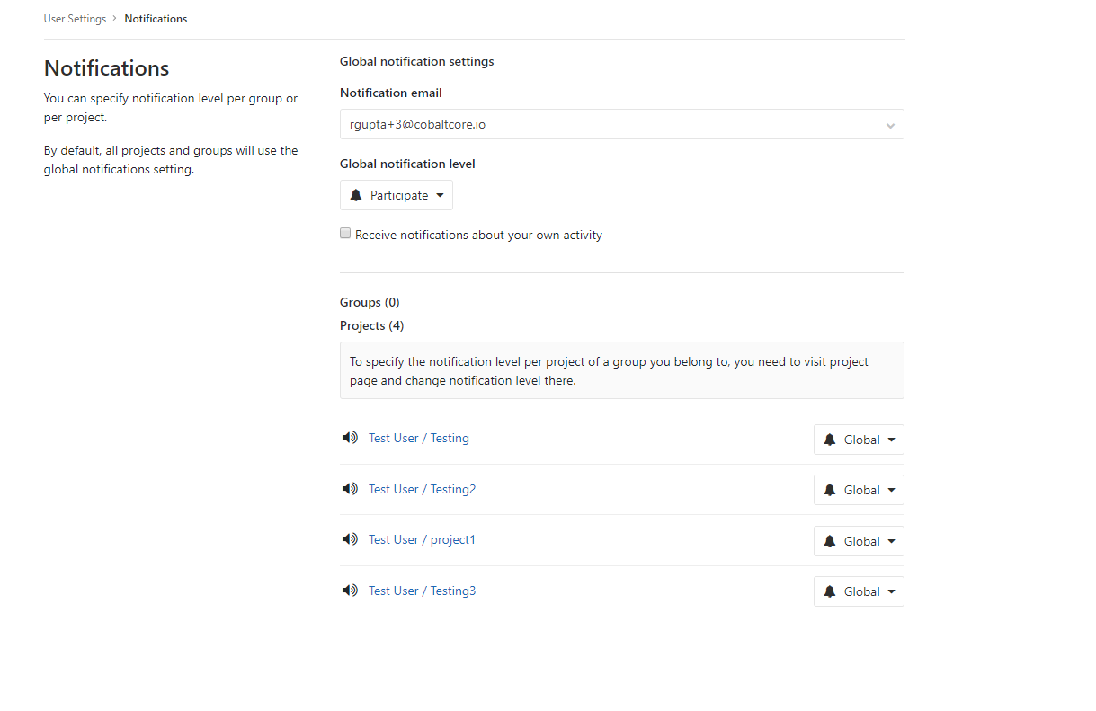 - Now navigate to User Settings -> Notifications page. https://gitlab.com/profile/notifications