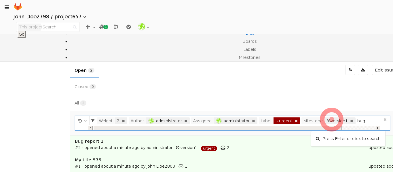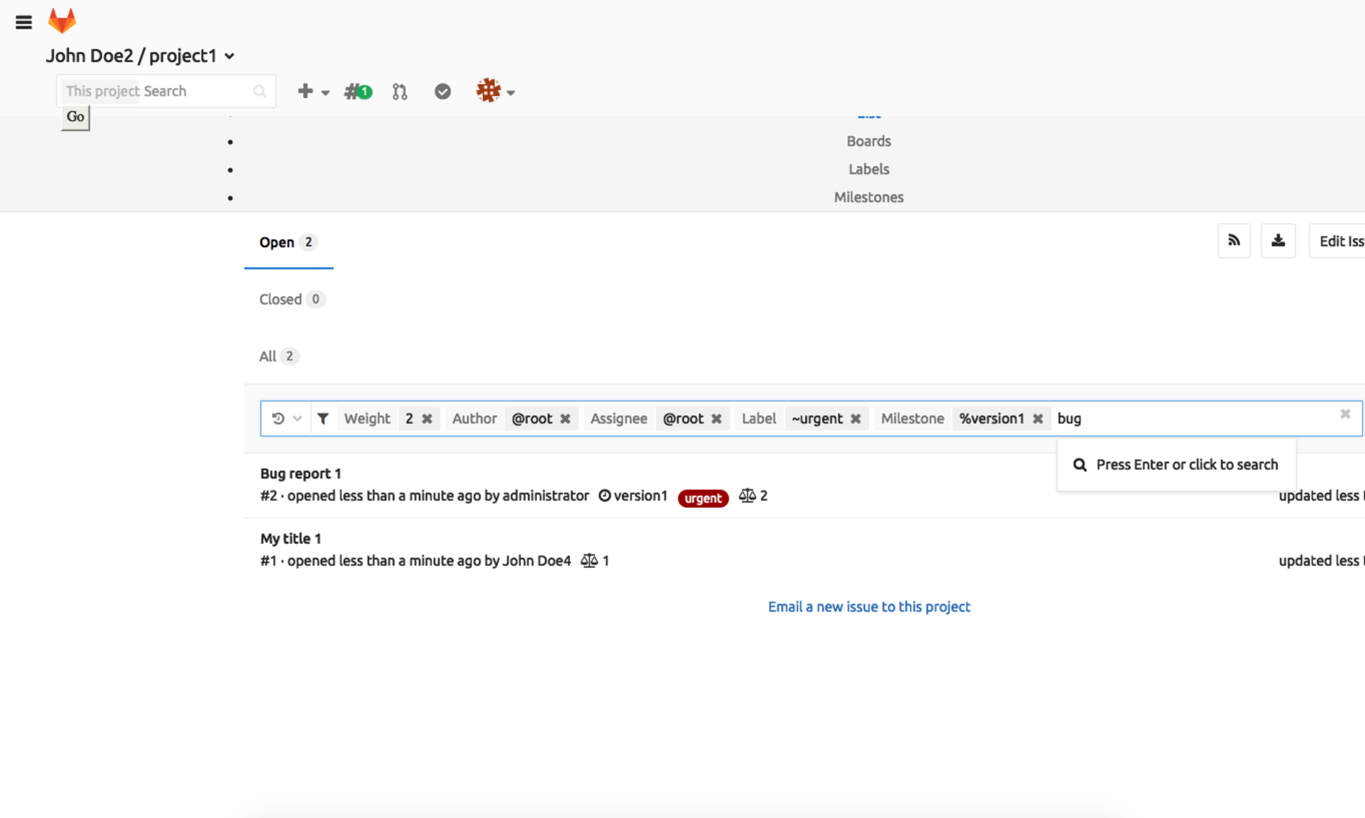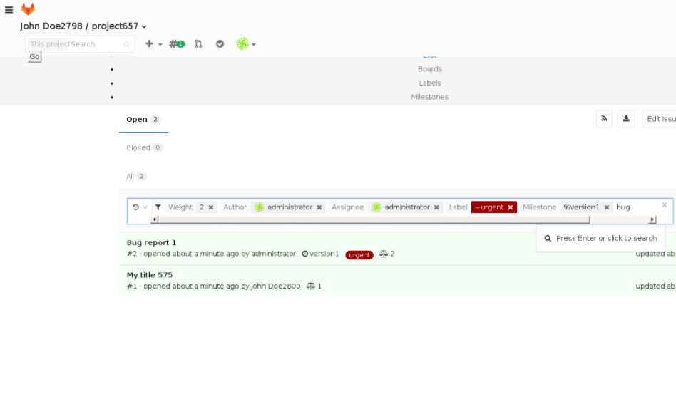 1) Filter issues weight weight with other filters filters issues by searched weight, author, assignee, label, milestone and text