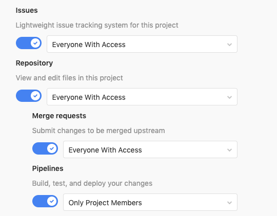 As an owner of public projects, set the settings shown in above screen shot. I.e set pipelines as