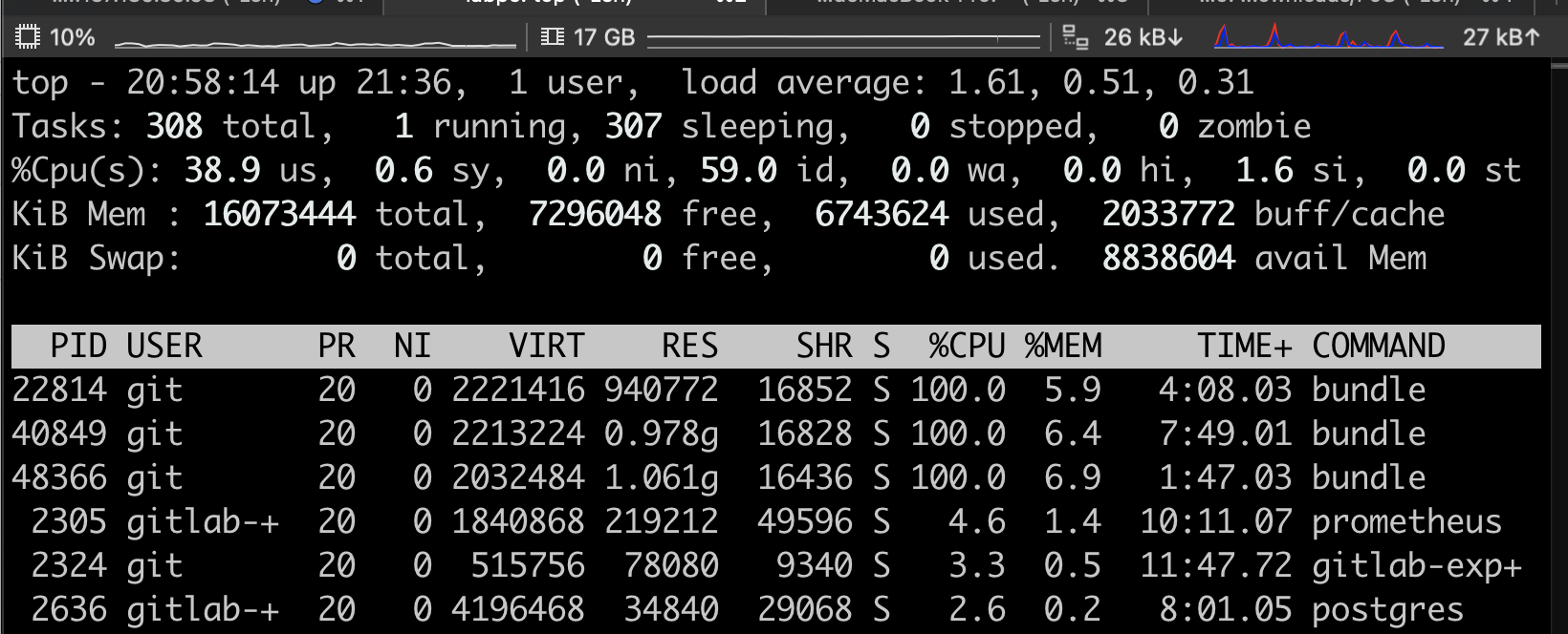 However, at this moment, the CPU on the server-side is 100% consumed. For example, when I do atopon the server-side, I can observe the process takes 100% CPU usage. Check screenshot below.