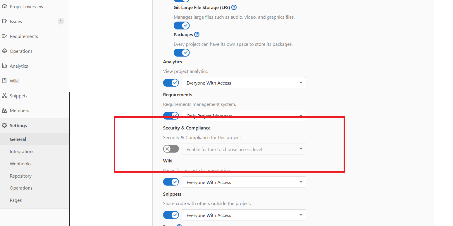 - Create a PUBLIC project and disable security & compliance from the Settings > General > Visibility, project features, permissions