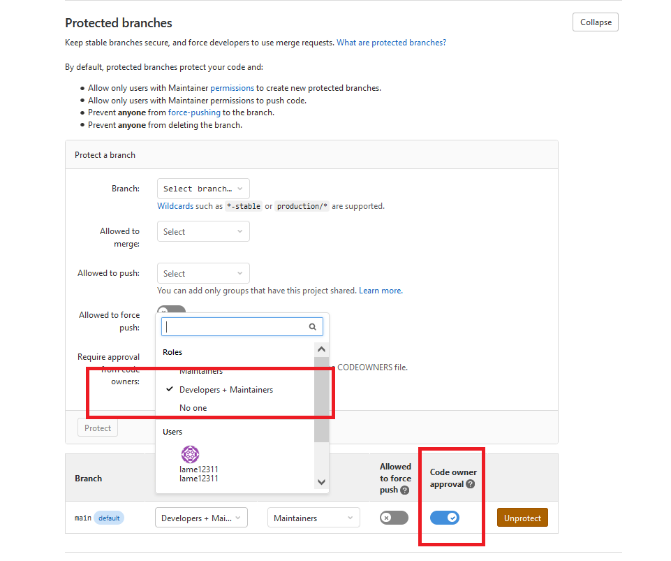 Codeowners approval rule on protected branch