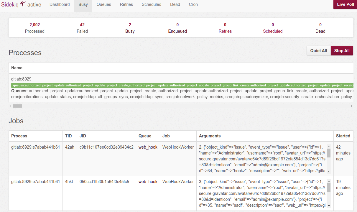 - The HTTP(S) connection between the Gitlab sidekiq process and the webhook server NEVER ends