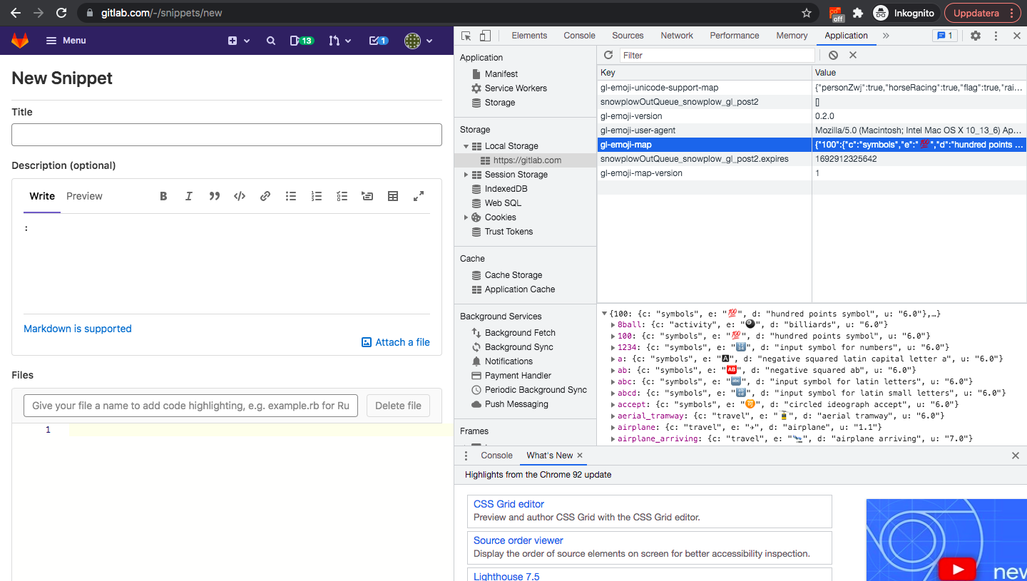The local storage object gl-emoji-map is not sanitized when injected into the DOM