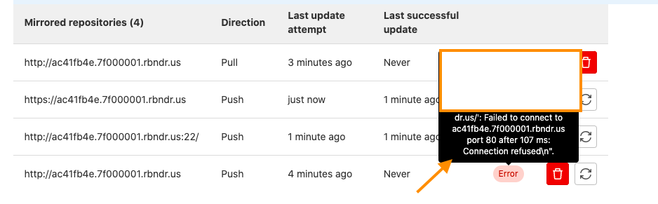 Mirroring repositoriesput the url generated in step 1 for eghttp://ac41fb4e.7f000001.rbndr.usinGit repository URL. - Use