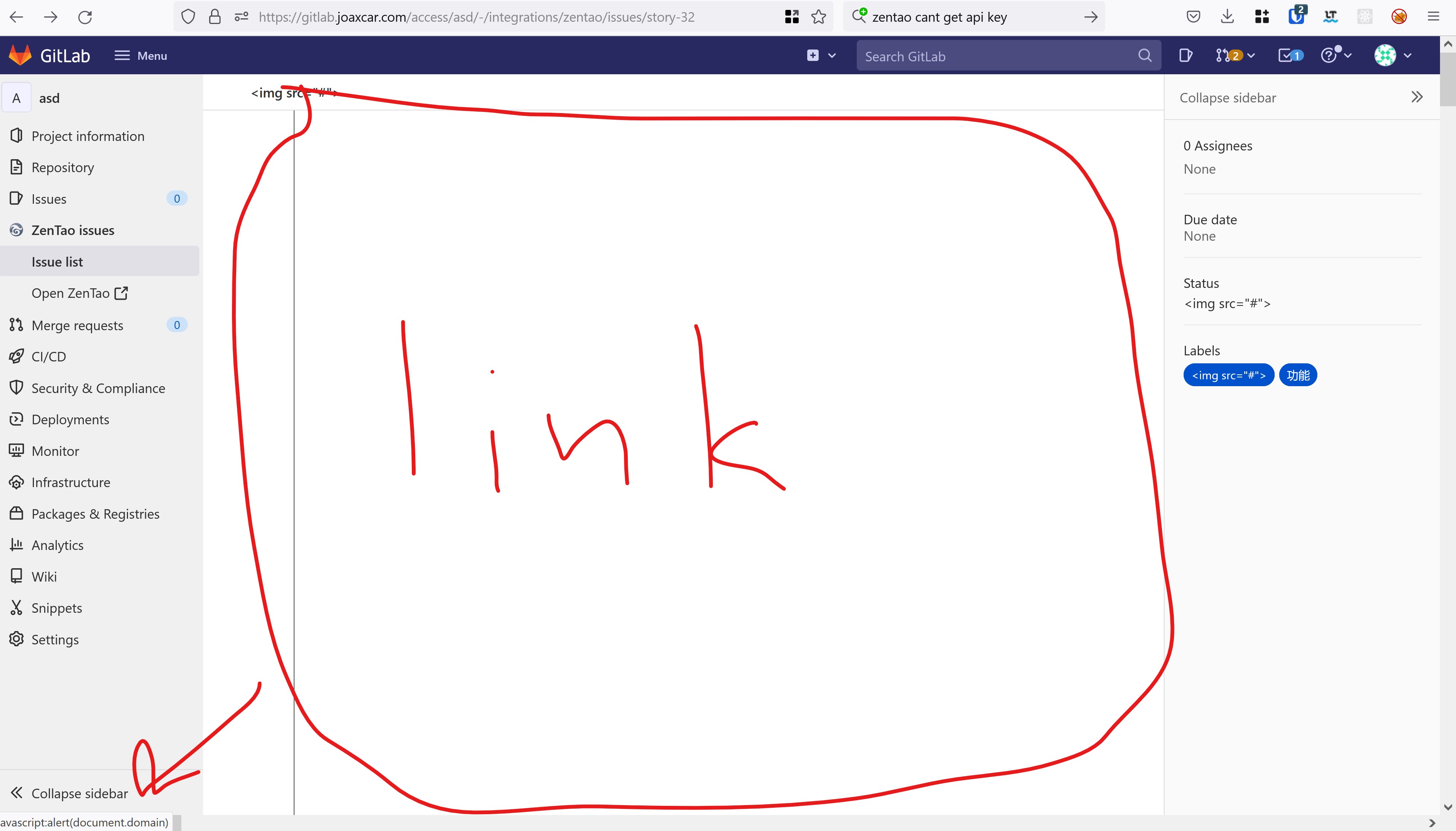 XSS in ZenTao integration affecting self hosted instances without strict CSP