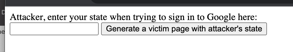 state-parameter in its own browser from the Google sign-in flow. This is needed also to make sure the login flow will fail for the victim. This is an important part on how we get the code. - Attacker makes a page for the victim. The page loads an iframe with