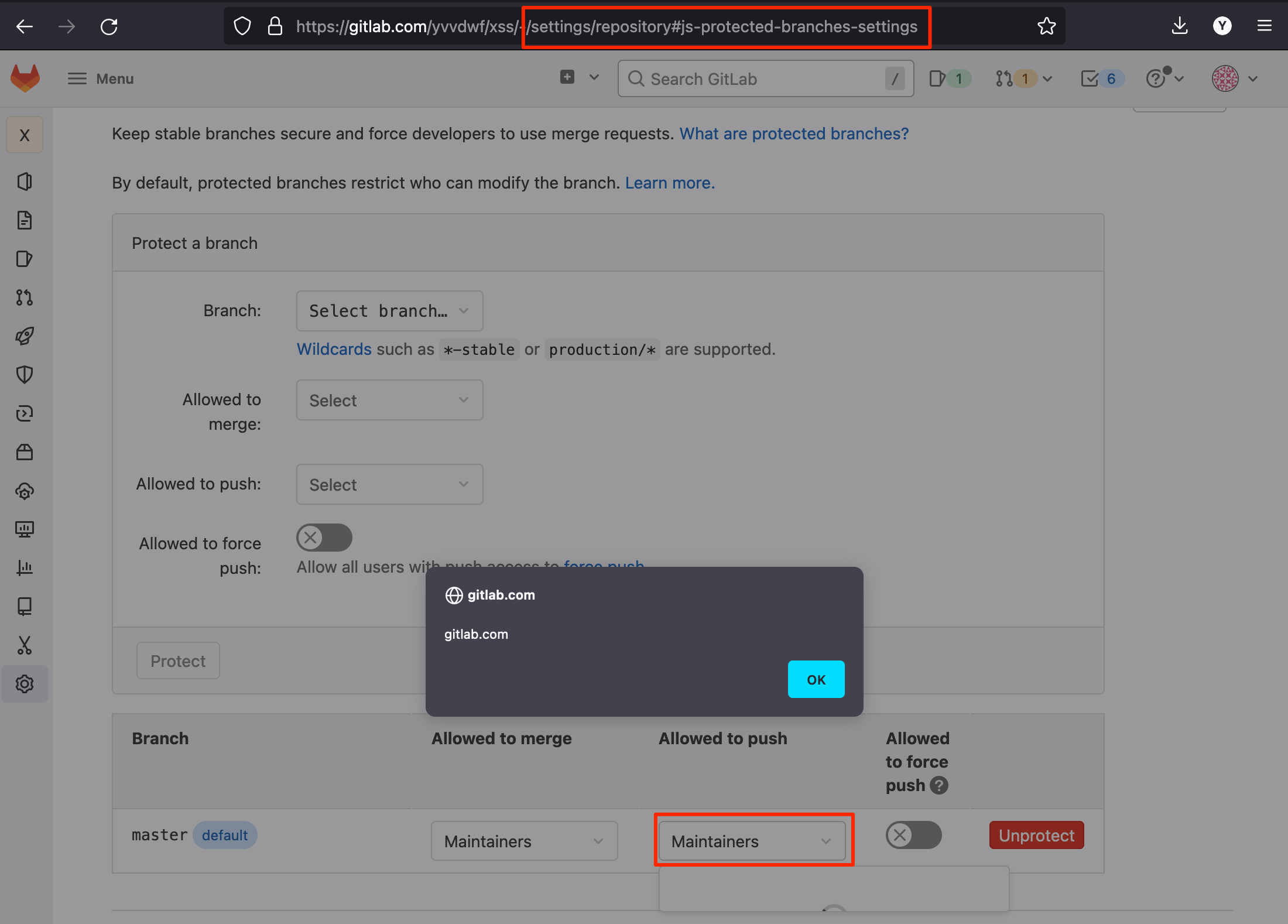 https://gitlab.com/yvvdwf/xss/-/settings/repository#js-protected-branches-settings