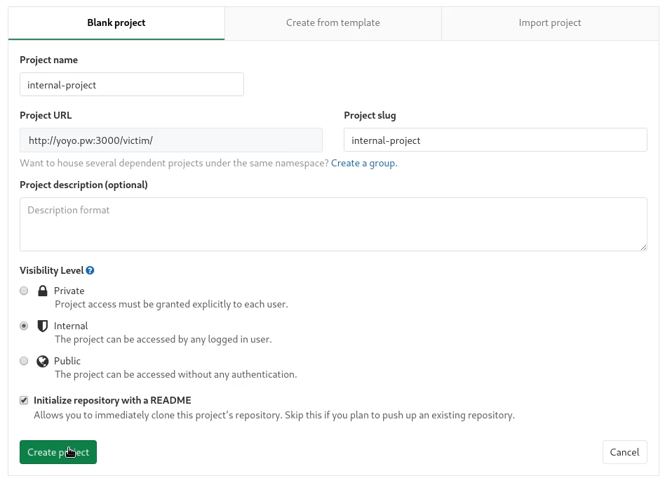 $ git clone http://yoyo.pw:3000/victim/internal-project.git