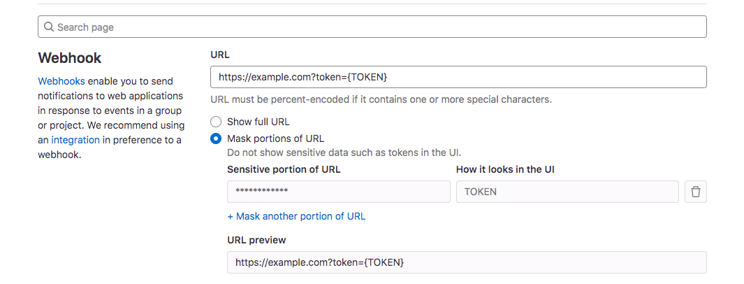 When this feature is used any secret string in the configured URL will be masked in the UI and in any logs in the UI. The values work the same as other tokens in that they are not even accessible by the user configuring it after it is first configured. It should not be possible for the initial user or any other users to retrieve these values. (see https://hackerone.com/reports/1758126)