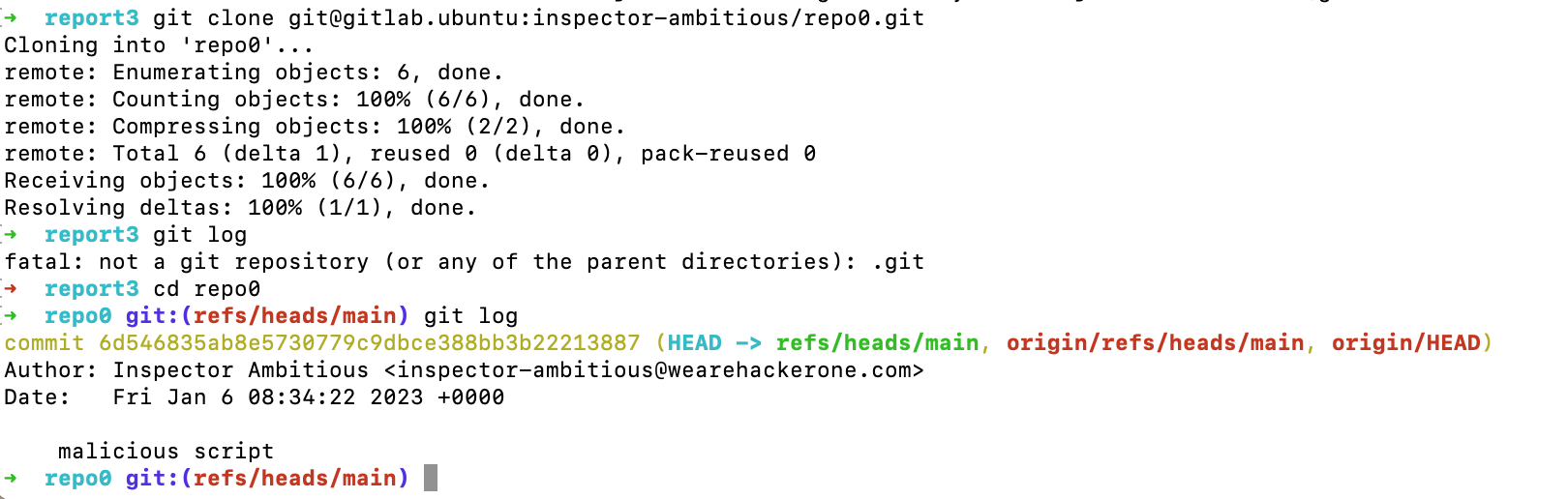 git commit -m "malicious script"