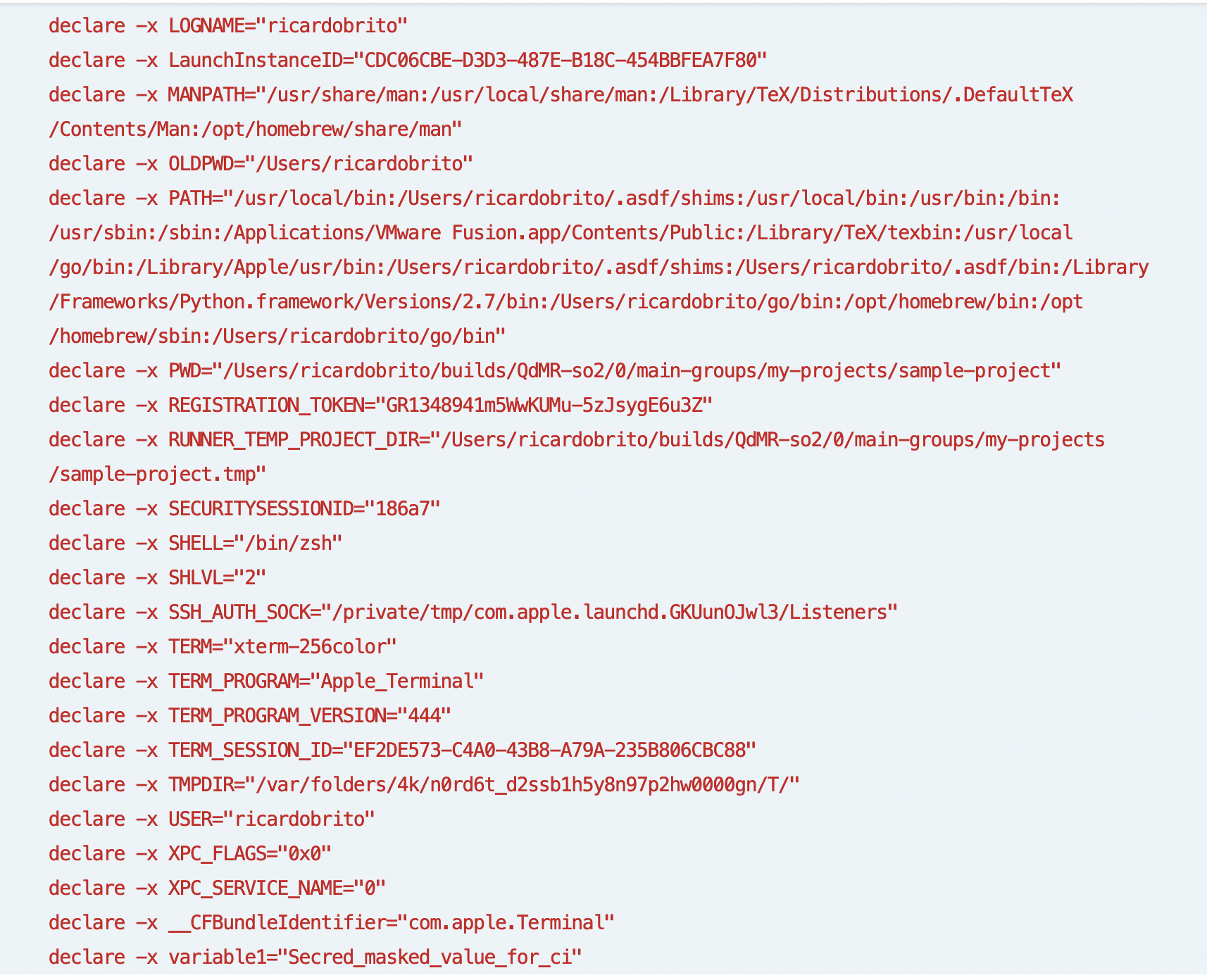 - Here is the issue: Now when the admin makes any change to any file inside the "sample project" which is inside the "my-projects" sub-group, which is inside the "Main Groups" and commits the changes, the payload from step 2, will run and send data to the attacker controlled website. This data will contained the leaked masked admin CI/CD variables: