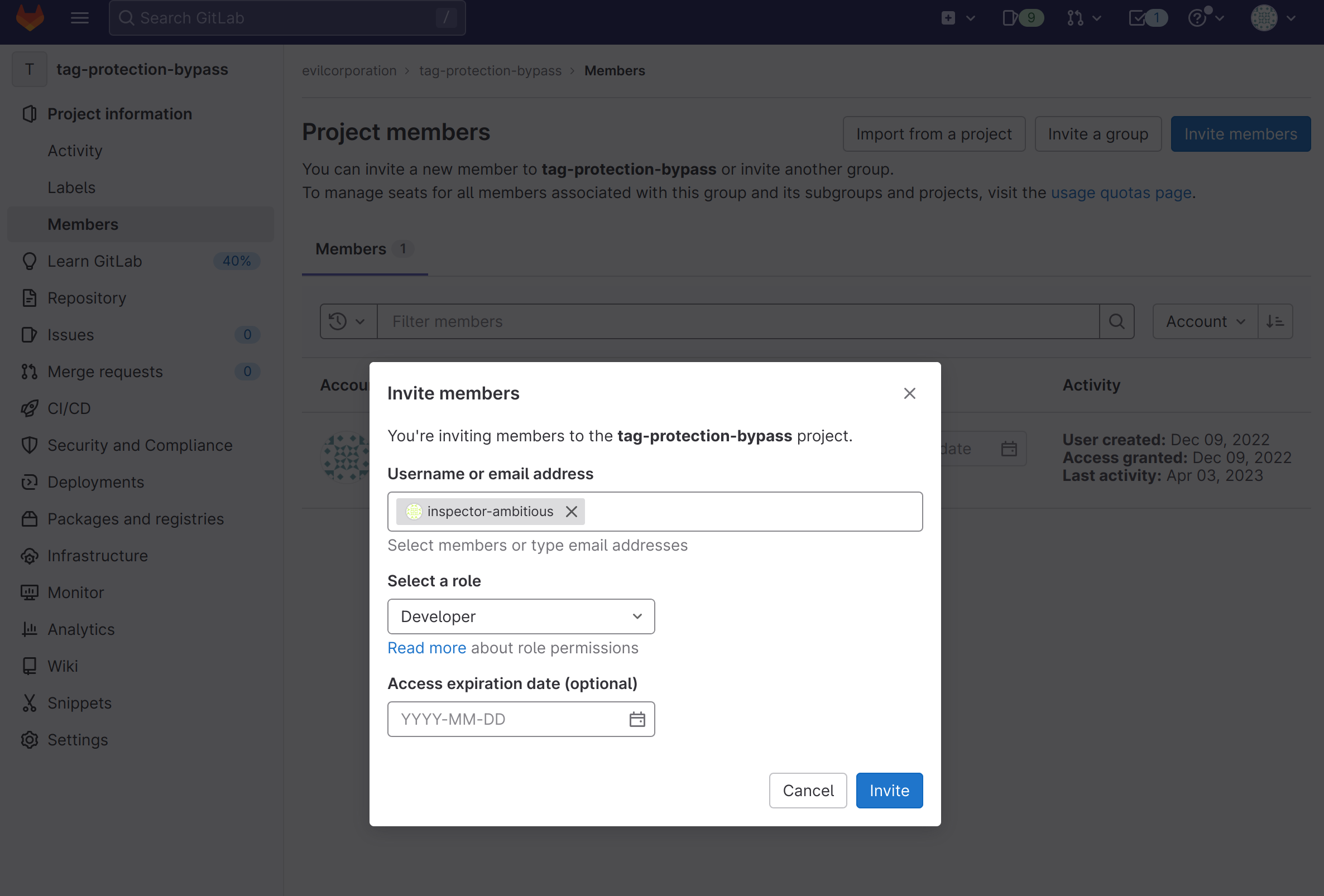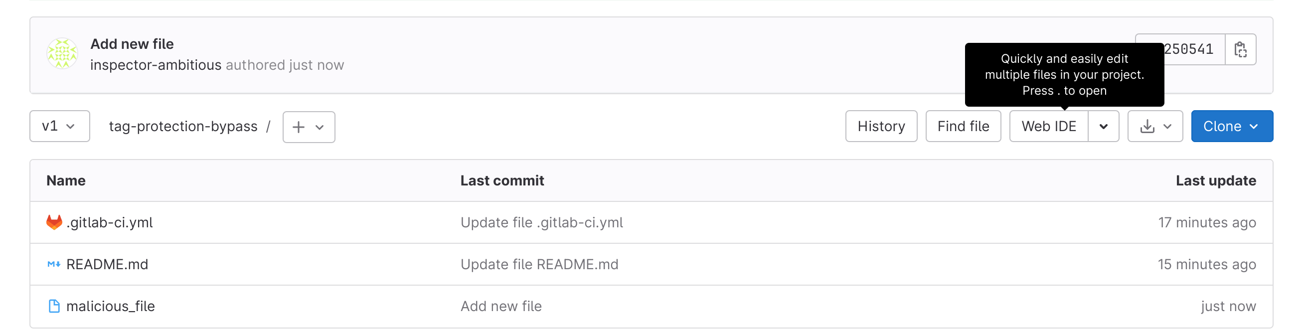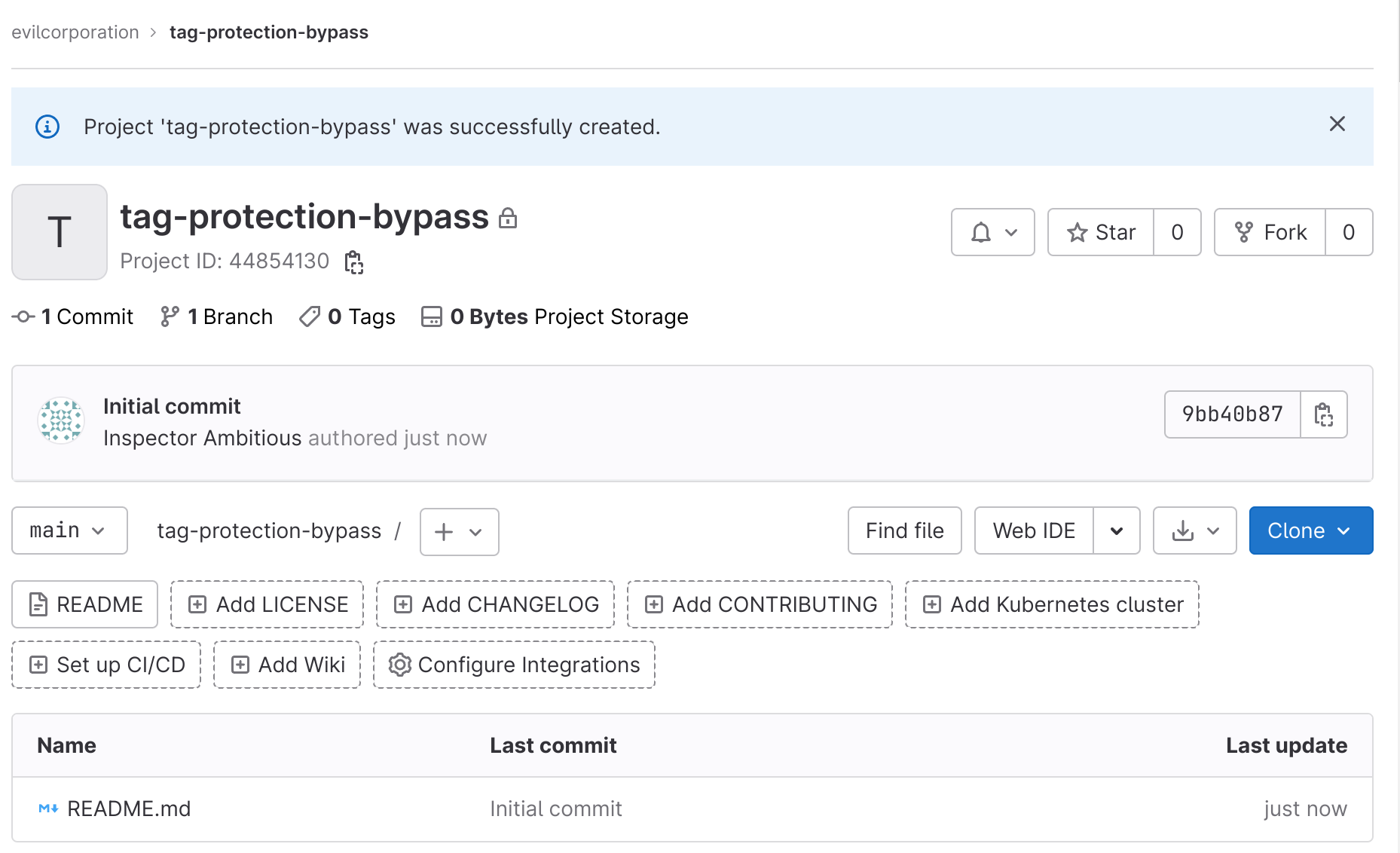 So at this stage inspector-ambitious should not be able to create tags since they are protected.