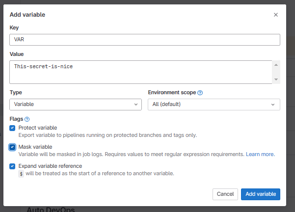 - Create a group with account A and masked CI/CD group variables (Group settings -> CI/CD -> Variables)