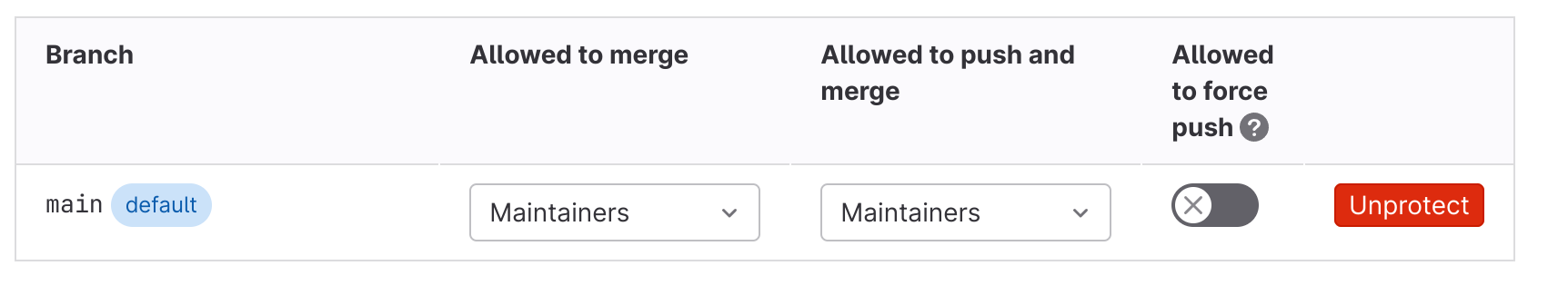 Settings > Repository > Protected Branchesand check thatmainbranch is protected