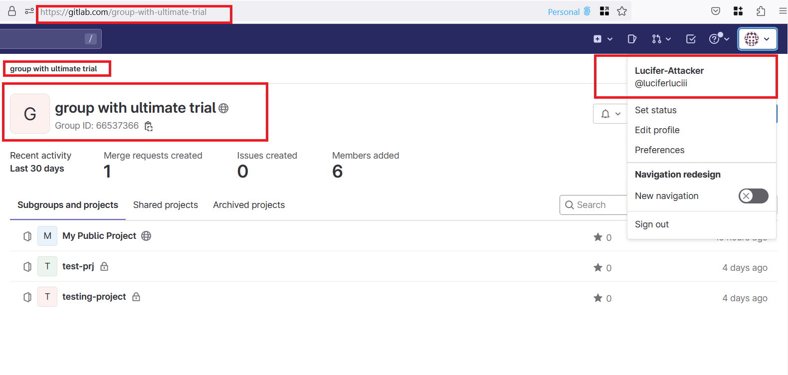 Lucifer-Attacker has access to group with ultimate trial and is a member without identity.