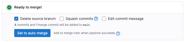 In this case, I set the auto-merge configurations to squash the commits, and edited the merge commit message, but these details are not shown in the info box. This can lead to confusion and uncertainty about whether the chosen configurations were indeed applied.