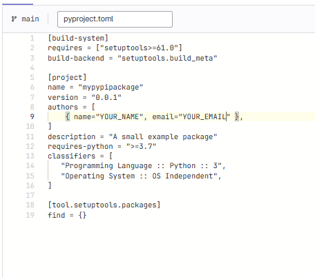 pyproject.tomland add your name and email