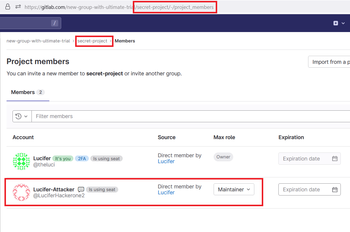 4.victim goes to victim-group membership page https://gitlab.com/groups/<victim-group>/-/group_members and adds attacker as maintainer.