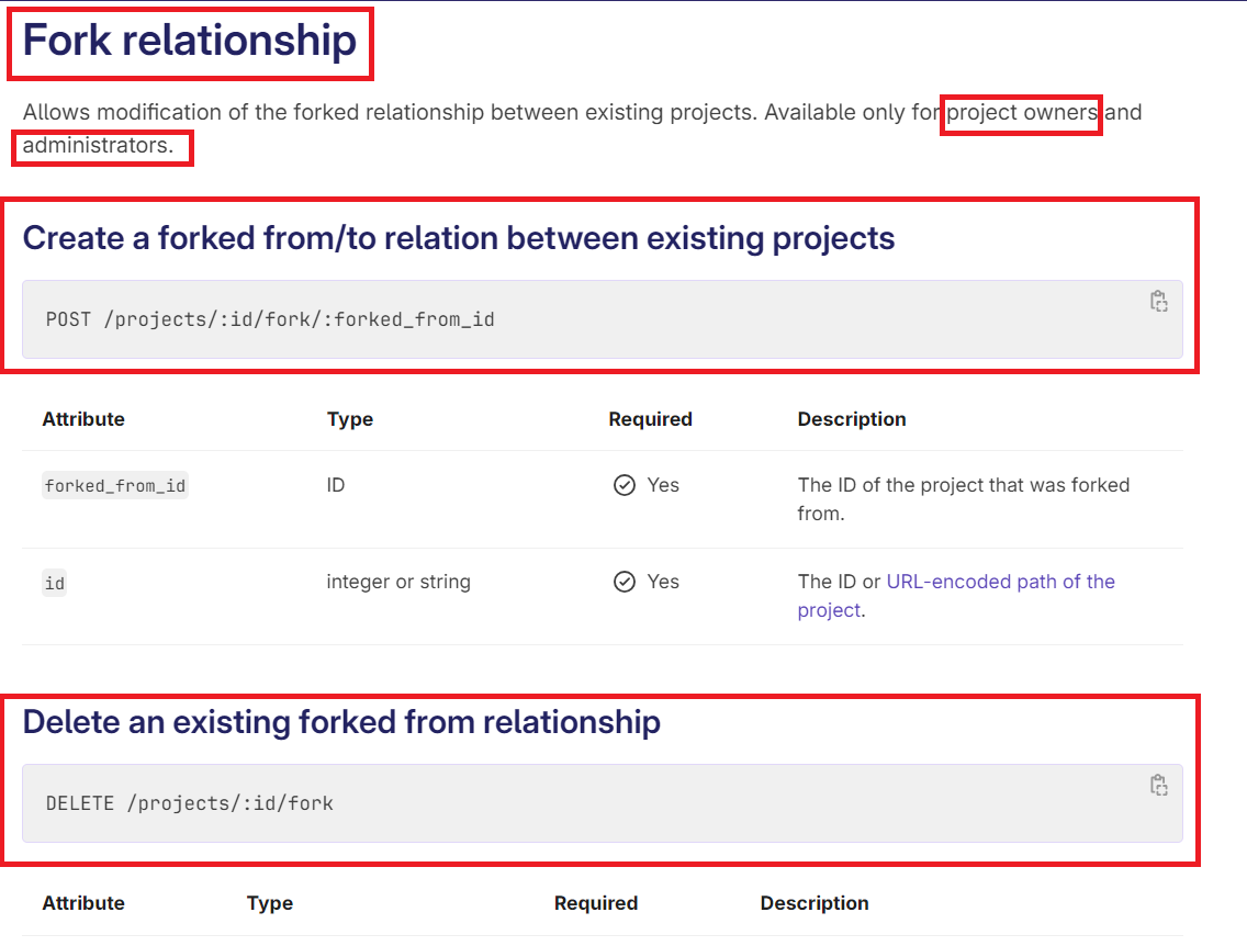 Maintainer can create a fork relationship between existing projects contrary to documentation