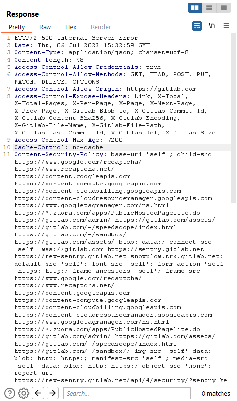- Click Send until the Response HTTP/2 500 Internal Server Error appears (usually 5 times when you click Send)