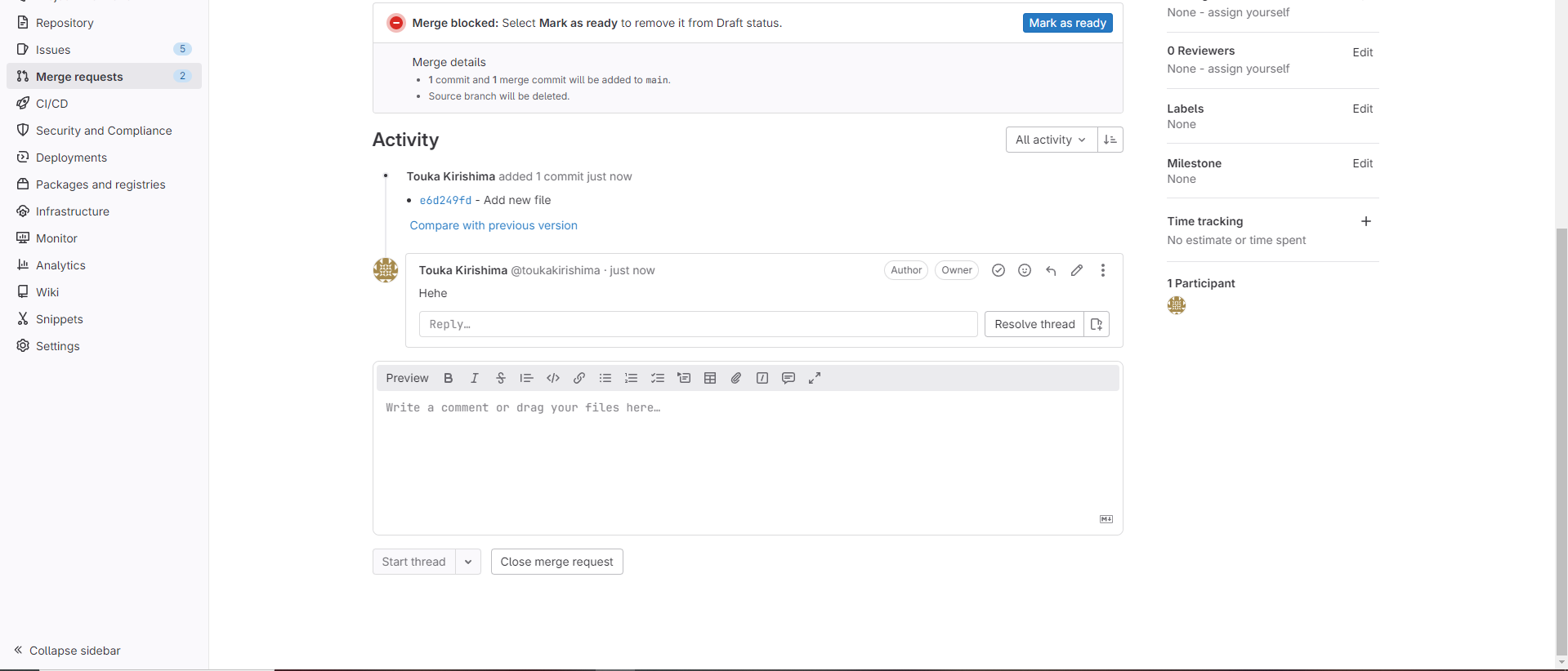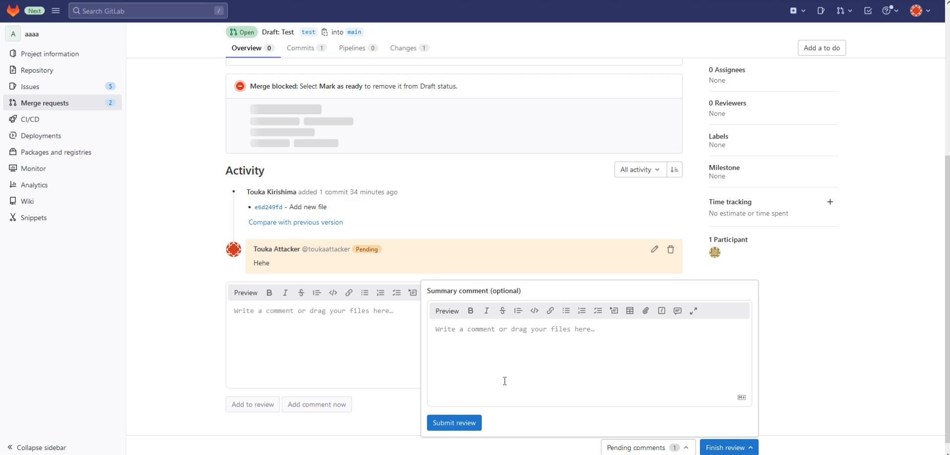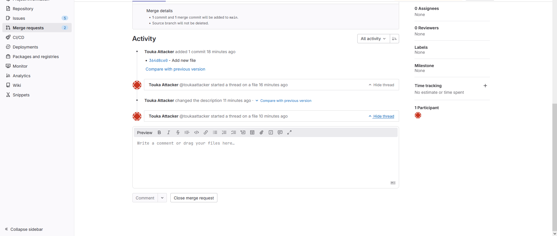 And Touka Kirishima (victim) made Merge requests.