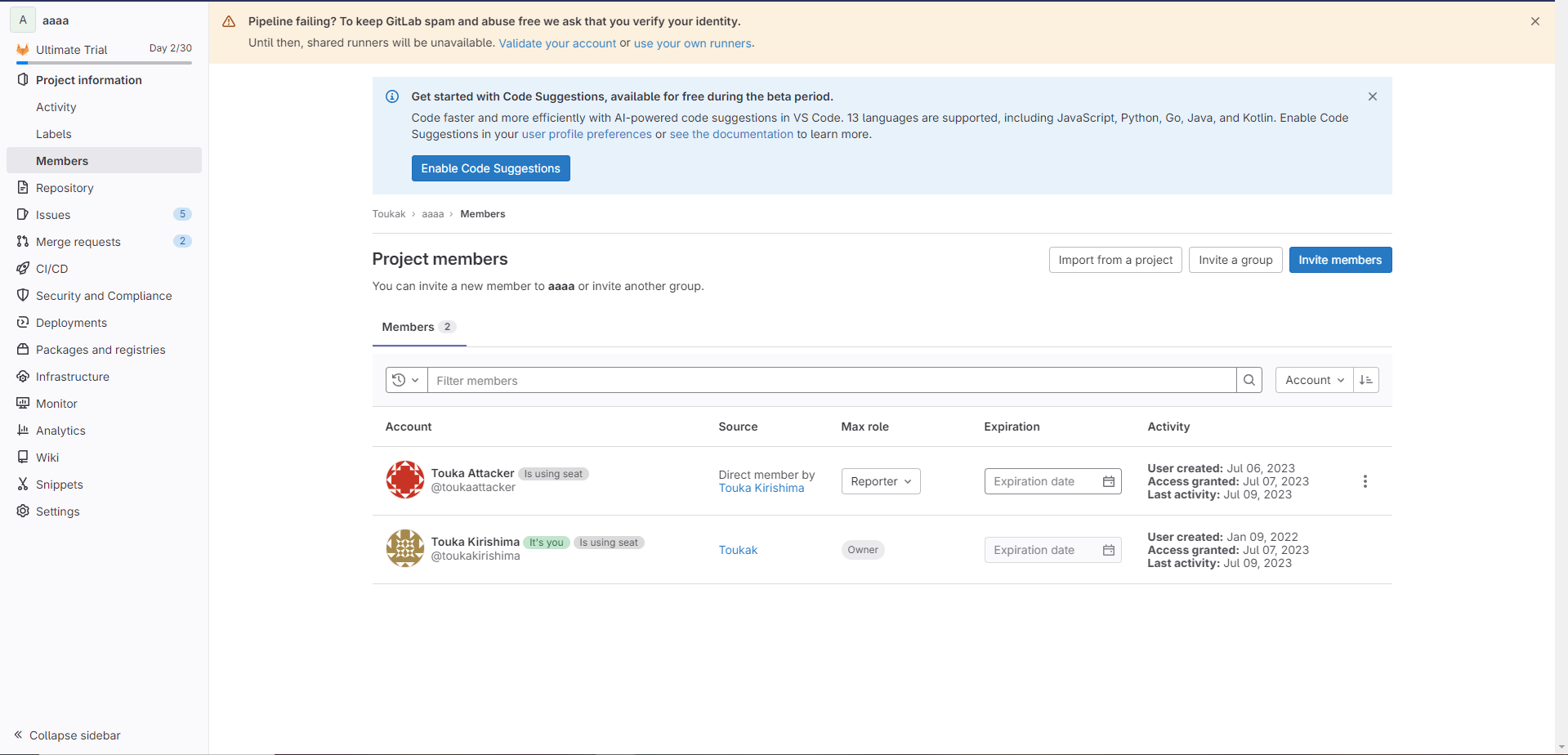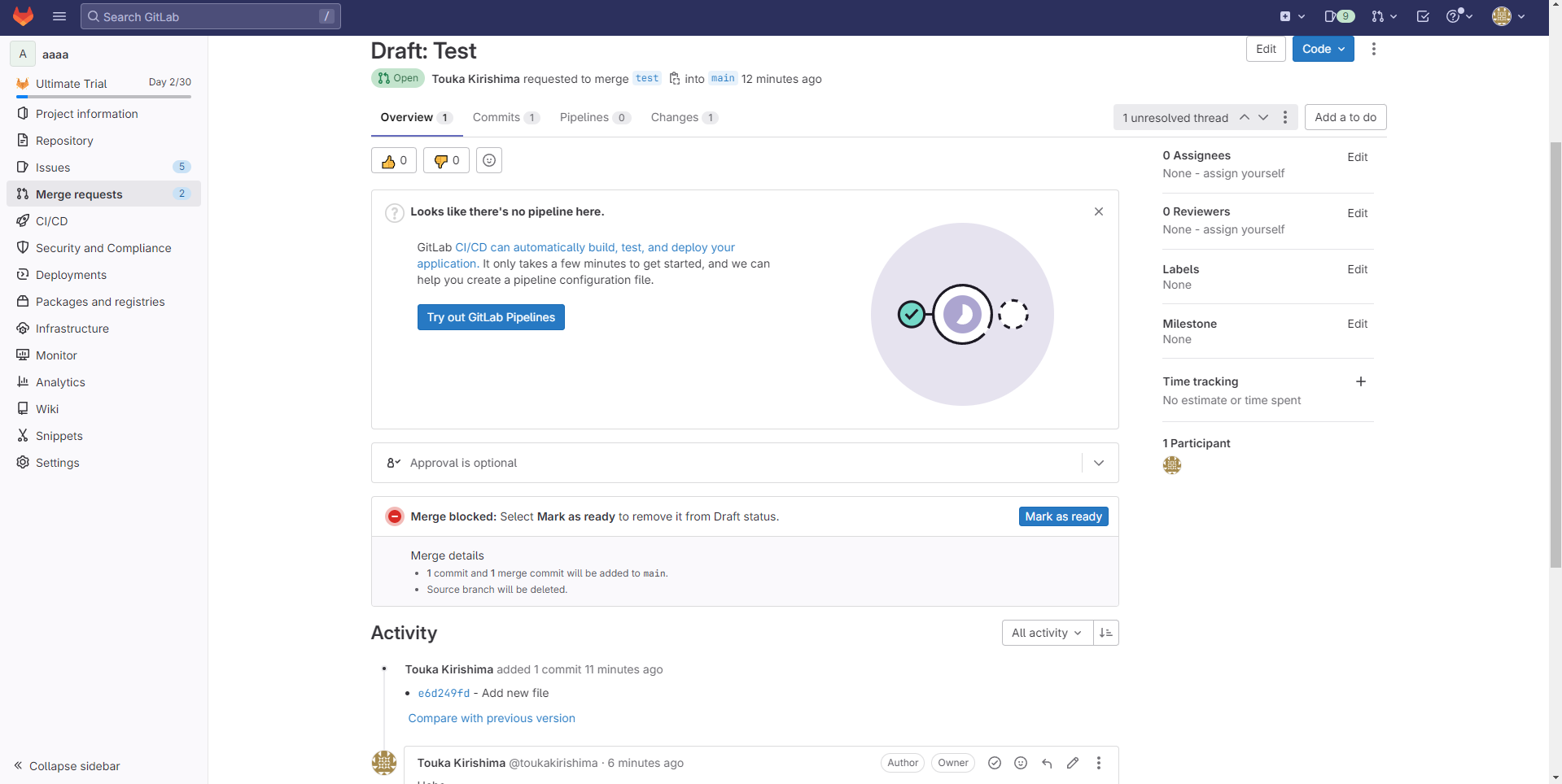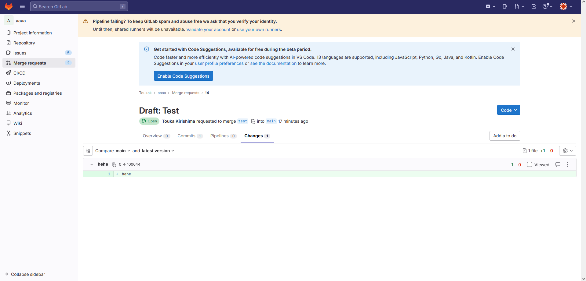 And Touka Kirishima (victim) made Merge requests.