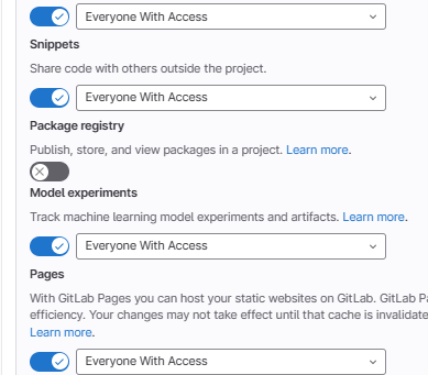 - Navigate to https://gitlab.com/GROUP/PROJECT/edit and toggle off