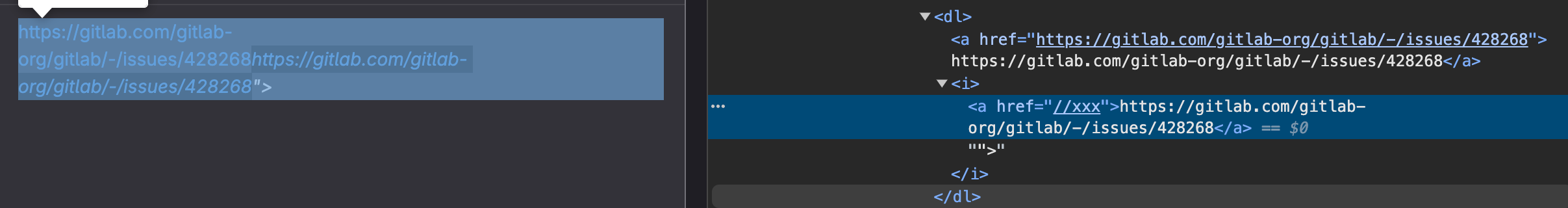 <dl><a href="https://gitlab.com/gitlab-org/gitlab/-/issues/428268*<i><a href="http:'&quot;yvvdwf=here&gt;&lt;img/src=&quot;0&quot;onerror=&quot;alert(0)&quot;&gt;https://gitlab.com/gitlab-org/gitlab/-/issues/428268" class="gfm">a</a></i>">https://gitlab.com/gitlab-org/gitlab/-/issues/428268*<i>[[a|http:'"yvvdwf=here><img/src="0"onerror="alert(0)">https://gitlab.com/gitlab-org/gitlab/-/issues/428268]]</i></a></dl>