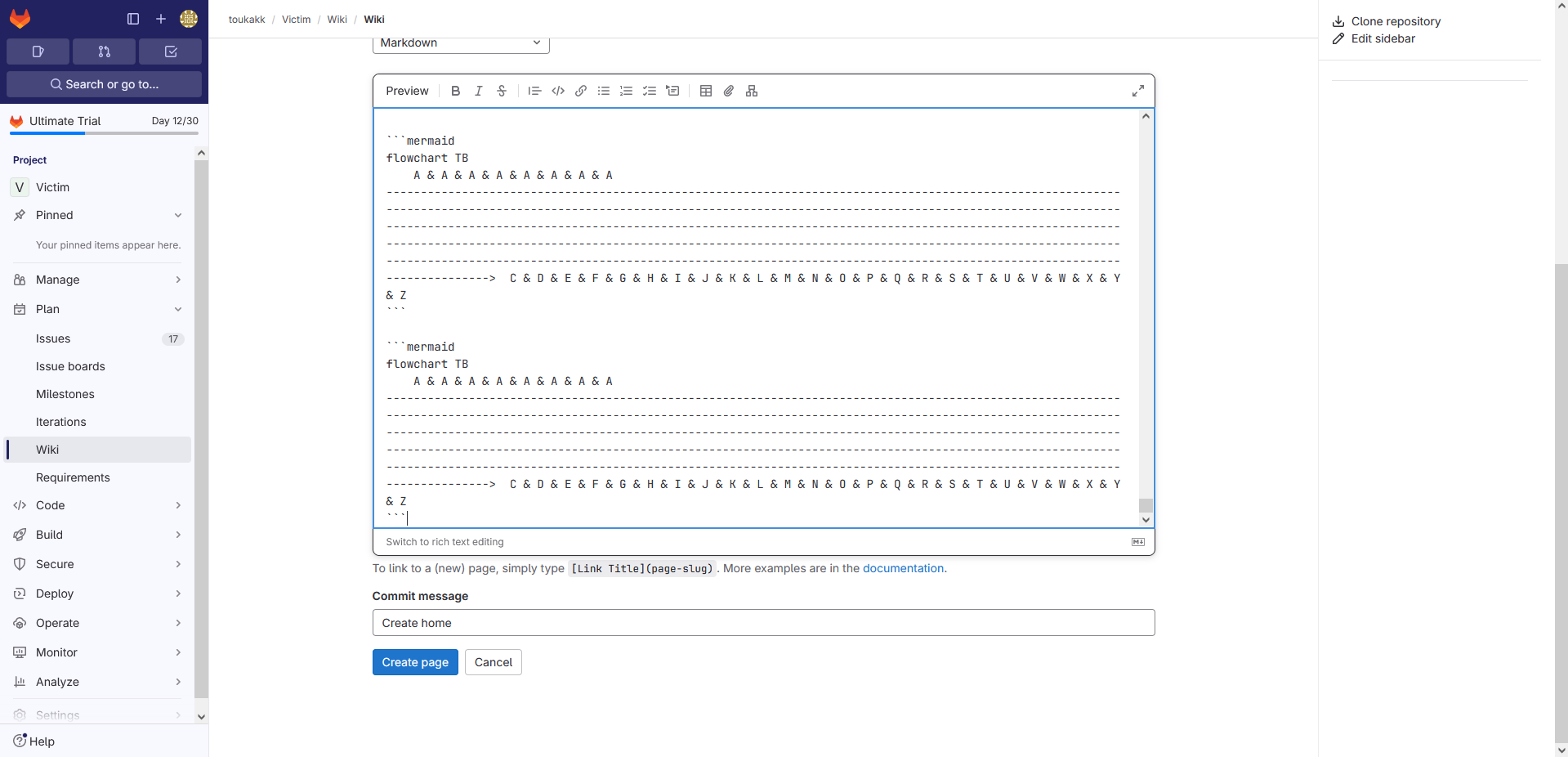 I found a DOS vulnerability when add wiki pages with Flowchart TB Mermaid, as an attacker I can make DoS and it takes a while to load, and uses 100% CPU.